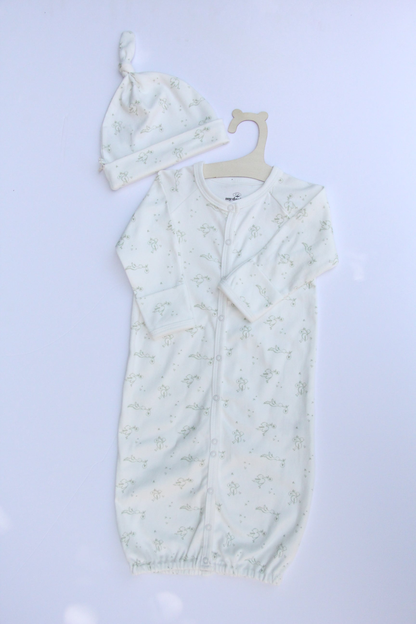 SnapGown Romper & Beanie Set - Lovey stork