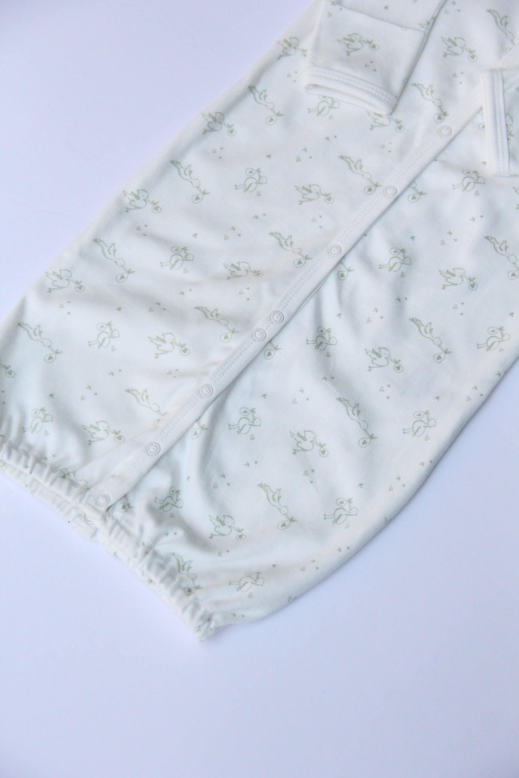 One outfit, all day long. Our lovey stork SnapGown Romper transforms from a daytime romper into a nighttime gown with just a few snaps—making changes quick and keeping your baby cozy around. It is gender neutral design, perfect for your little boy or girl. Made from our luxuriously soft, 100% organic Egyptian cotton and paired with a matching beanie, it’s a newborn essential you’ll reach for again and again.